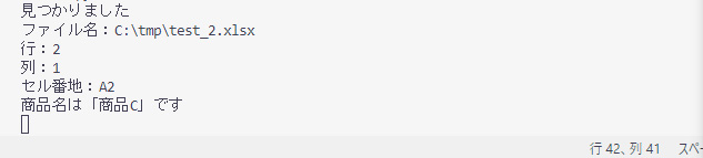 PythonからExcelファイルの中身を検索するプログラムの実行